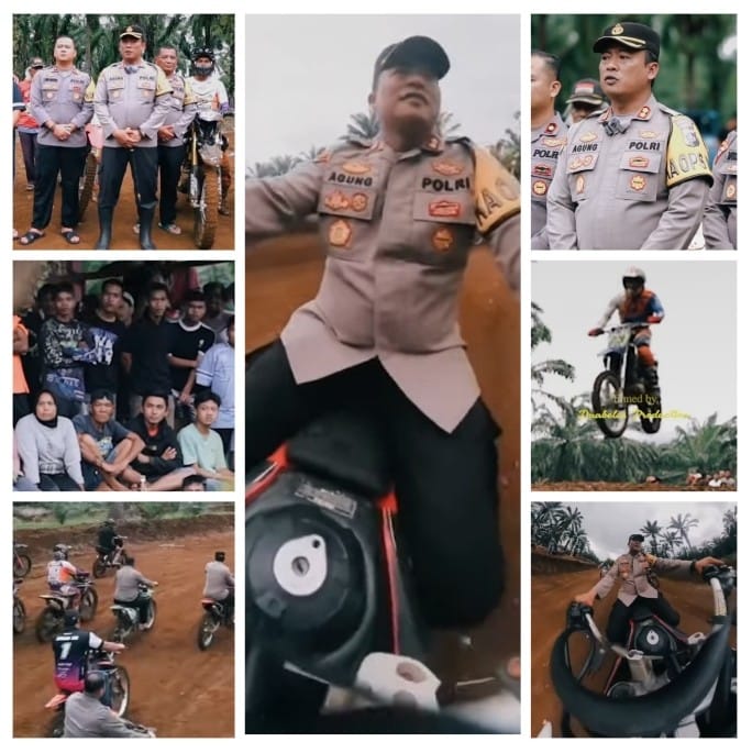 AKBP Agung Tribawanto tampil sangat dekat dengan warga. Dengan seragam dinas lengkap namun tak ragu berlumur tanah, Kapolres menunjukkan bahwa kepemimpinan bukan hanya soal instruksi, tetapi kehadiran langsung di tengah komunitas. Kepada para pembalap muda, ia menegaskan bahwa kegiatan ini bukan sekadar ajang adu kecepatan, melainkan momentum kebangkitan sosial.