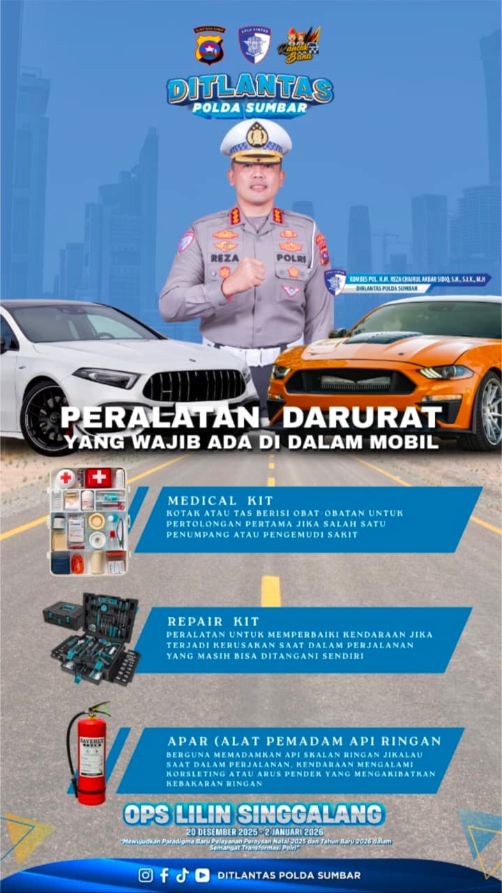 Dalam rangkaian operasi tersebut, Kombes Pol Reza Chairul Akbar menekankan pentingnya kesiapsiagaan setiap pengemudi dengan melengkapi kendaraan pribadi menggunakan peralatan darurat yang wajib tersedia di dalam mobil. Langkah ini dinilai sangat penting untuk meminimalisir risiko fatal saat terjadi situasi tidak terduga di perjalanan.